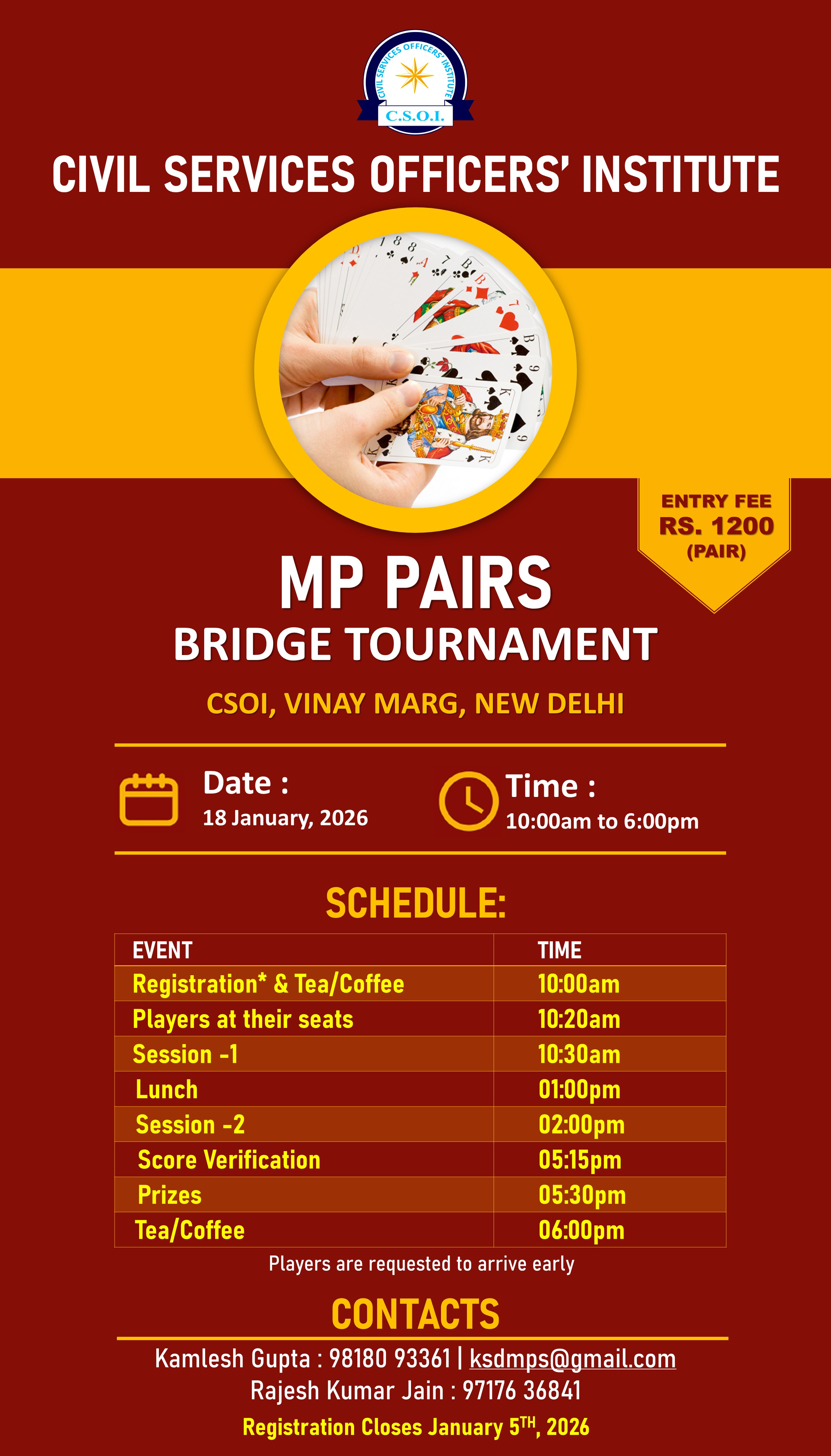 CSOI is pleased to announce the empanelment of two reputable Event Management Companies i.e. M/s Bougainvilla Design (P) Ltd and M/s Classic Caterers & Decorators to our esteemed club members for various events. These two agencies will offer a comprehensive range of services including supply of Tentage items, illumination, flower arrangements, Sound & Light and Photography at both locations of CSOI (Vinay Marg & K G Marg).